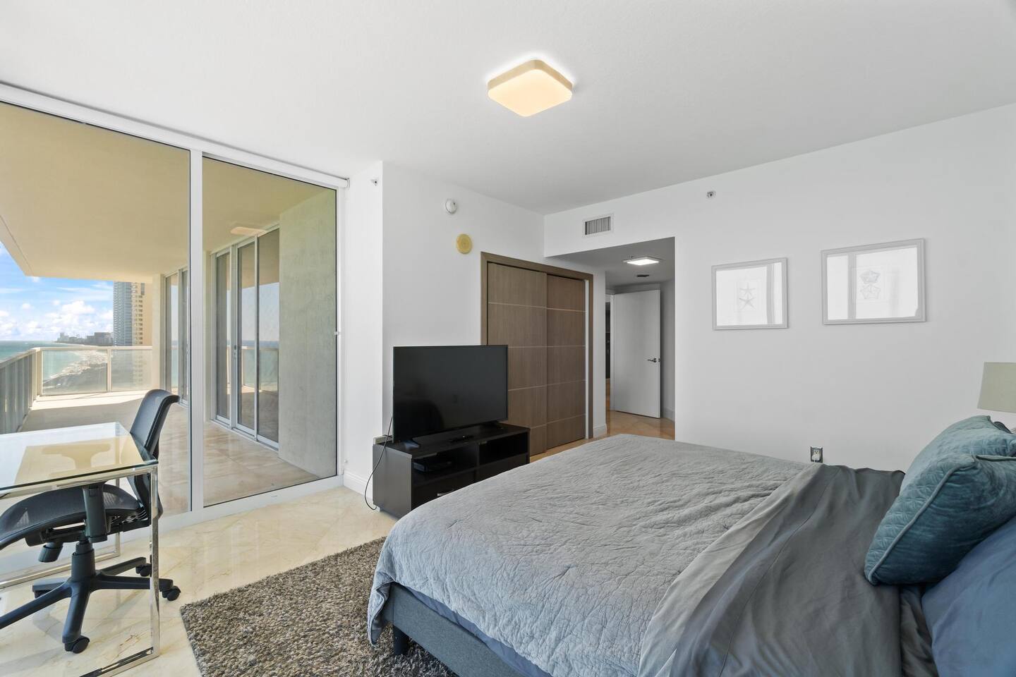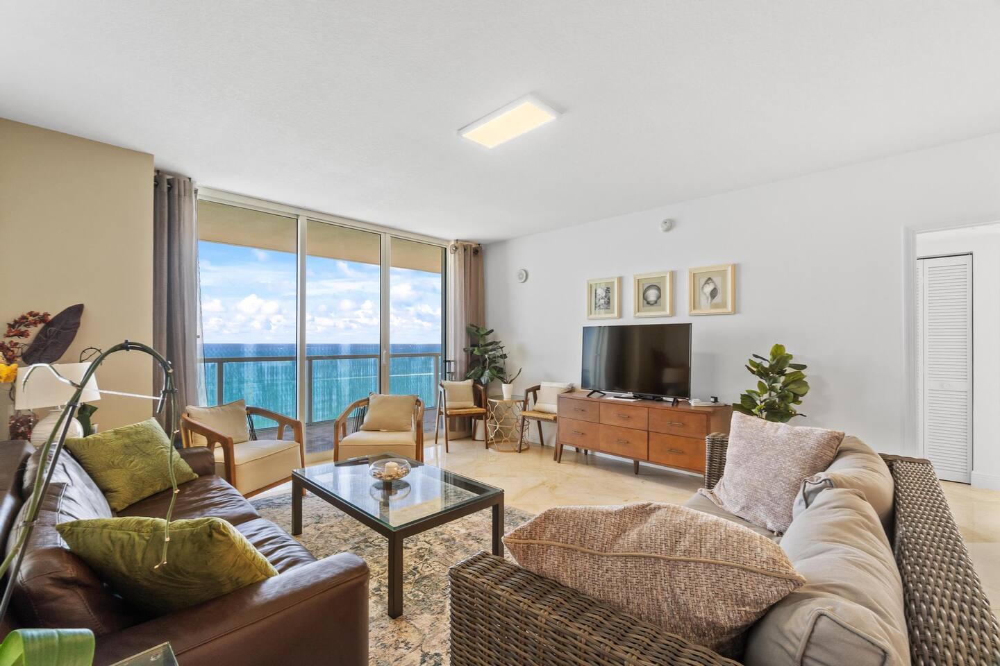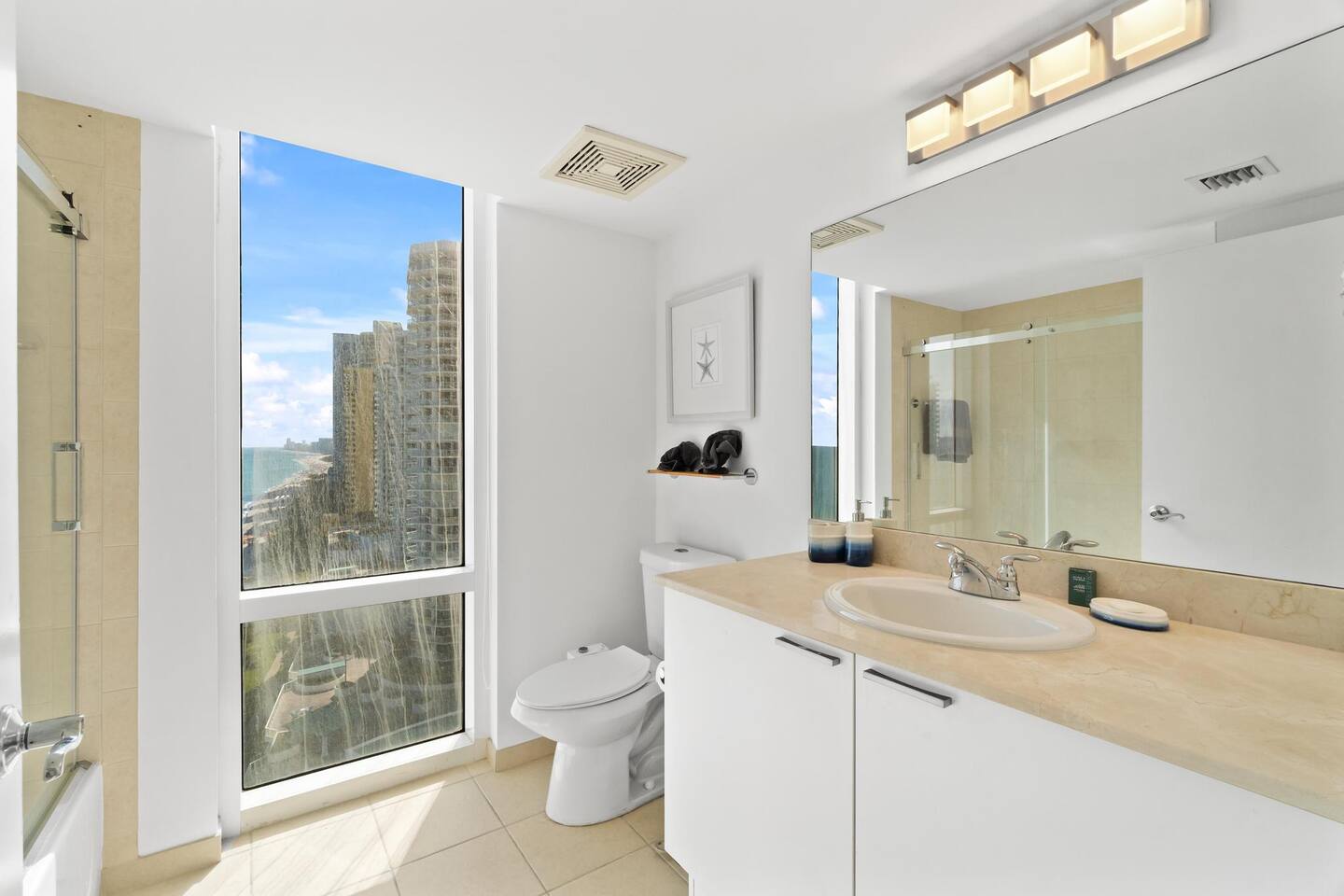 Welcome to your seaside sanctuary in the heart of Sunny Isles Beach! This luxurious, fully furnished retreat is designed for comfort and unforgettable memories, featuring a balcony with mesmerizing direct oceanfront views and a dazzling city skyline backdrop. The condo comfortably accommodates up to 6 guests. Sleeping Arrangements: - Master Bedroom: King-size bed - Second Bedroom: Queen-size bed - Living Room: Sofa Included for Your Stay: - A fully equipped kitchen with a dining set, cookware, and essentials. - In-unit washer and dryer. - High-speed internet and cable TV. - All necessary bed linens and bath towels. Conveniently located near restaurants, pharmacies, parks, Aventura Mall, Bal Harbour Shops, and both Miami and Fort Lauderdale airports.