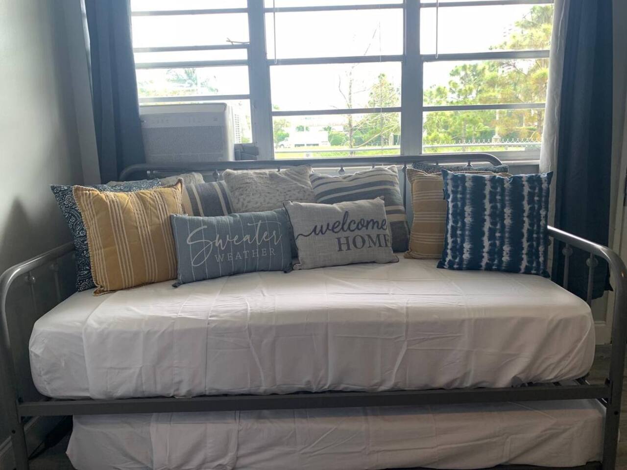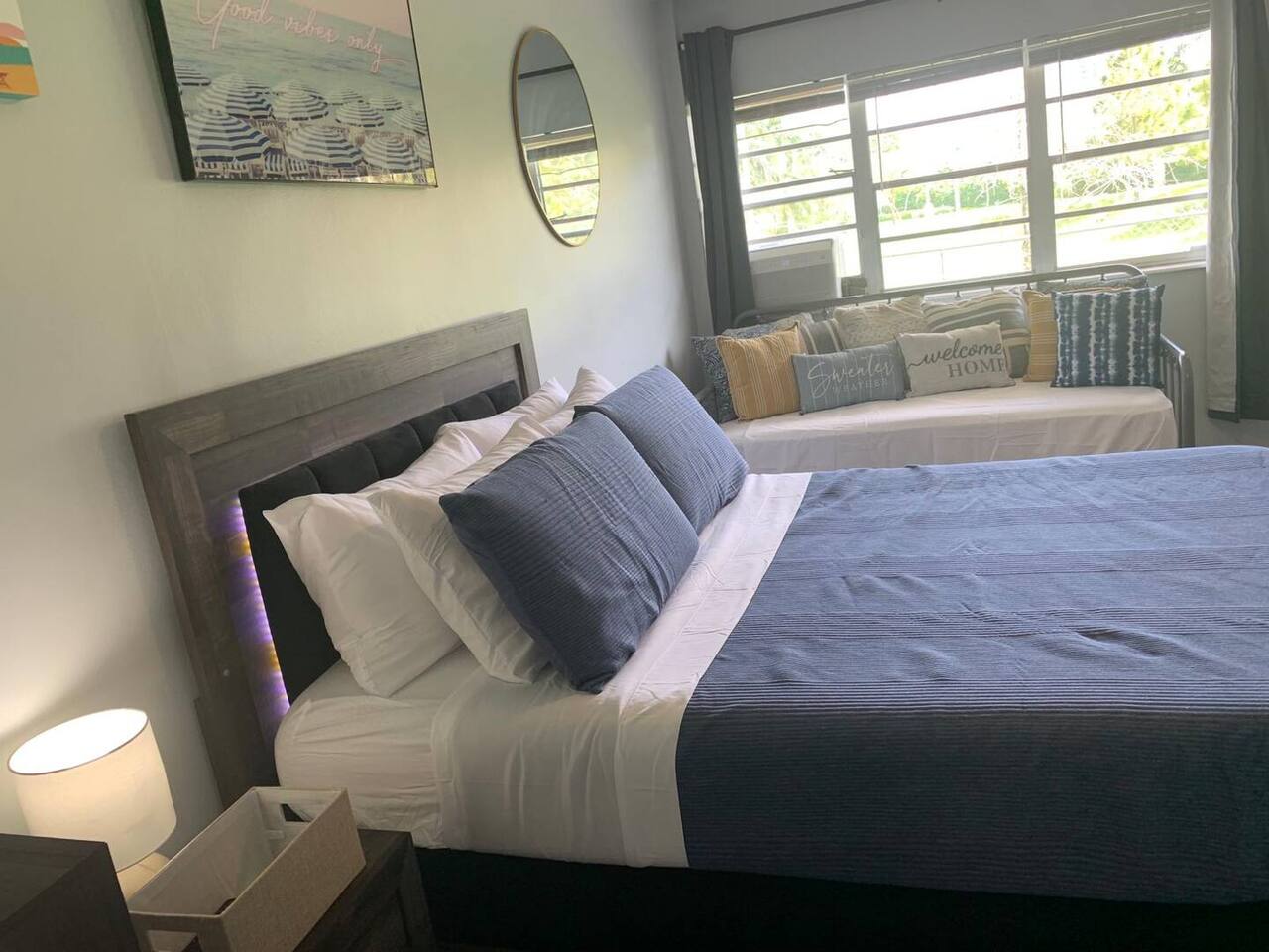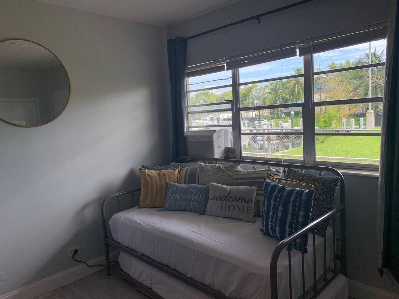 Discover your ideal South Florida vacation in this bright and well-equipped studio, your perfect home base for sun and fun. The space is thoughtfully designed to ensure a comfortable and convenient stay. Key Features & Amenities: - Sleeping Arrangements: Comfortably sleeps 3-4 guests with a queen bed, a versatile daybed, and an extra mattress. - Comfort: Air conditioning to keep you cool and a lovely view of the waterway. Kitchenette: Equipped for preparing light meals and snacks. - Work & Entertainment: Includes a dedicated workspace, TV, and high-speed Wi-Fi. Bathroom: A clean and modern bathroom to refresh after a day of exploring.